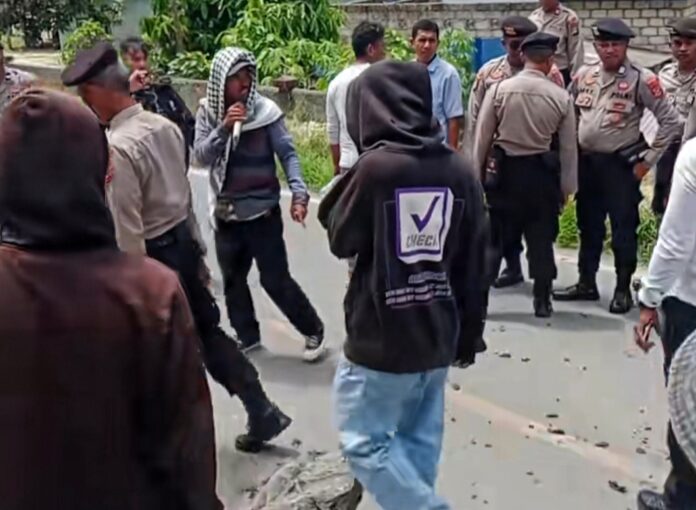 Kericuhan bermula saat massa aksi melarang truk bermuatan aspal melintas karena diduga melebihi kapasitas. Para sopir kemudian tersulut emosi dan menyuarakan keberatan.