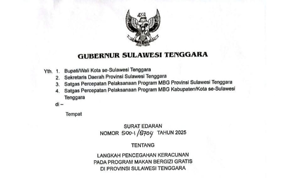 Namun, beberapa laporan insiden keracunan di sejumlah daerah menjadi perhatian serius Pemprov Sultra. “Pengawasan ketat harus dilakukan agar makanan yang disajikan benar-benar aman dikonsumsi,” tegas Gubernur dalam surat edarannya.