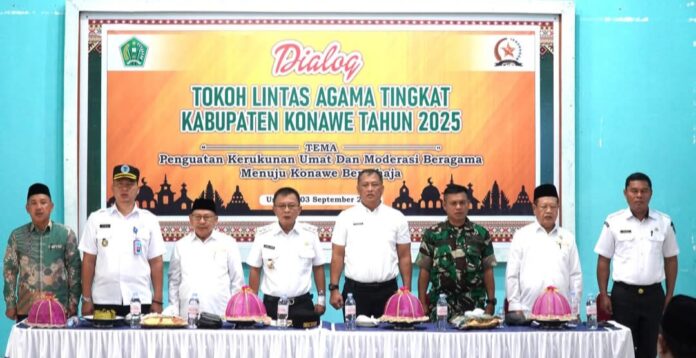 Dialog yang mengusung tema “Penguatan Kerukunan Umat dan Moderasi Beragama Menuju Konawe Bersahaja” ini dihadiri Sekda Konawe, unsur Forkopimda, pimpinan OPD, Kepala BNN, Kepala Kantor Kemenag, Ketua FKUB, MUI Konawe, tokoh agama, tokoh adat, tokoh pemuda, majelis taklim, serta sejumlah perwakilan masyarakat.