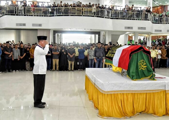Kendari, PancanaNews.com – Suasana haru menyelimuti Auditorium Universitas Halu Oleo (UHO), Minggu (24/8/2025). Ribuan pelayat dari unsur pimpinan universitas, civitas akademika, mahasiswa, pejabat daerah, hingga masyarakat umum berkumpul untuk memberikan penghormatan terakhir kepada Rektor UHO, Prof. Armid, S.Si., M.Si., M.Sc., D.Sc.