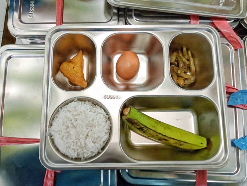 Pada hari pertama, para siswa disuguhi nasi putih, telur rebus, tahu goreng, sedikit sayur kacang panjang, dan sebuah pisang. Dari sisi kandungan, menu ini sekilas terlihat memenuhi unsur pokok gizi: ada karbohidrat, protein hewani, protein nabati, sayur, dan buah. Jika dilihat di atas kertas, ia tampak lengkap.