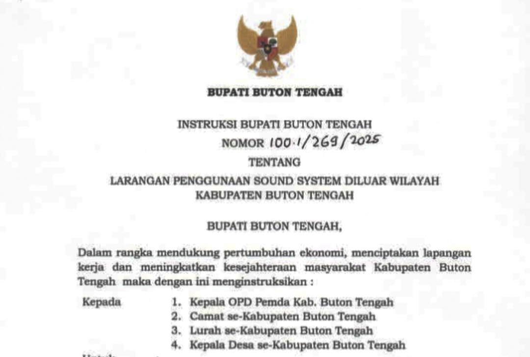 Dalam surat tersebut ditegaskan bahwa seluruh kegiatan pemerintahan, baik di tingkat kabupaten, kecamatan, kelurahan, maupun desa harus menggunakan jasa sound system yang berasal dari dalam wilayah Buton Tengah.