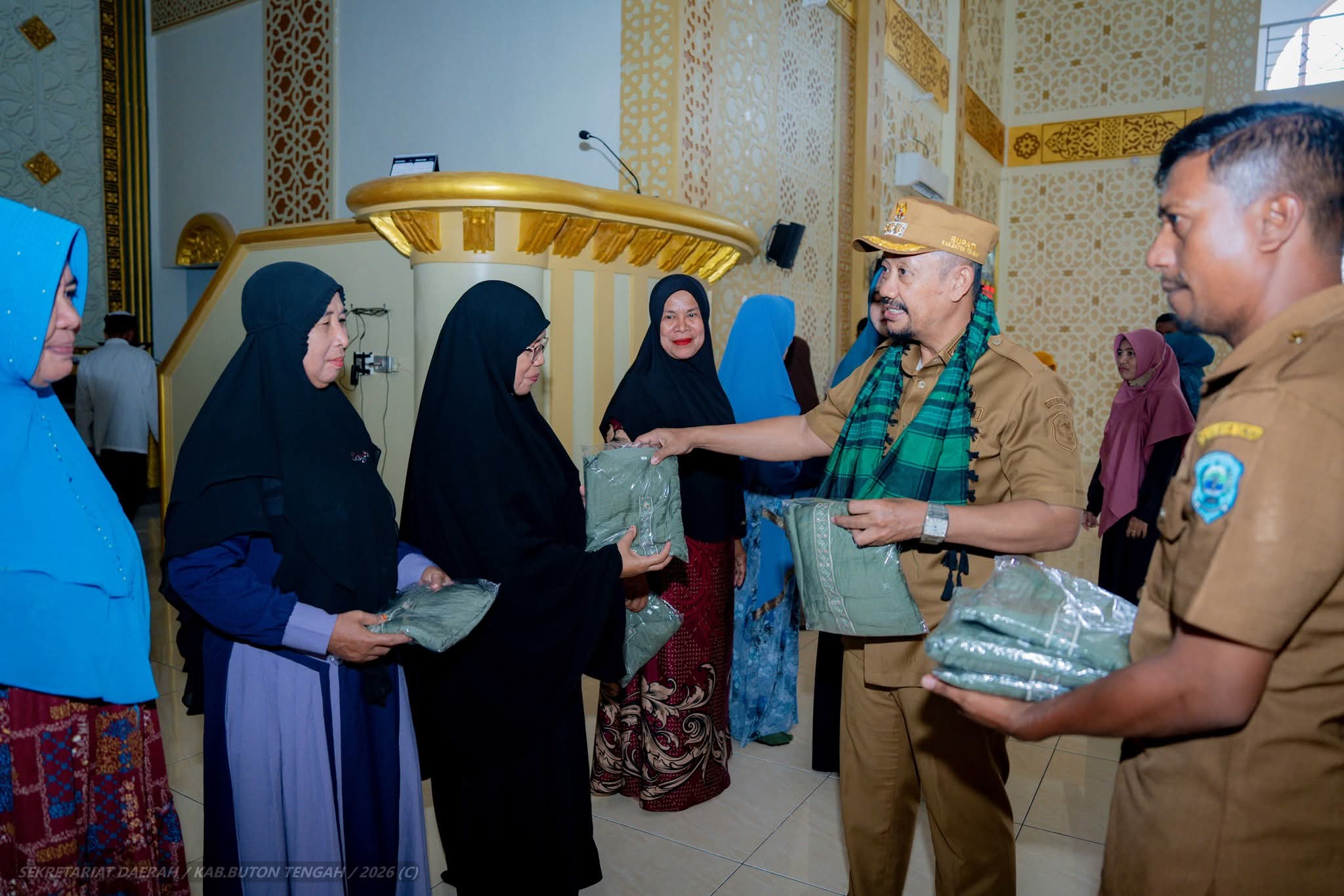 PancanaNews.com, Buton Tengah – Suasana penuh kehangatan dan syukur mewarnai Masjid Nurul Yaqin, Kecamatan Mawasangka, saat Bupati Buton Tengah (Buteng), Dr. Azhari, menyerahkan bantuan 250 pasang seragam secara langsung kepada Badan Kontak Majelis Taklim (BKMT) dan Kelompok Majelis Taklim. Senin (19/01/2026)