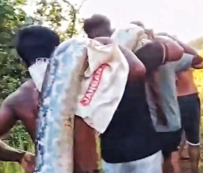 Muna, PancanaNews.com– Warga Desa Maabholu, Kecamatan Lohia, Kabupaten Muna, Sulawesi Tenggara, digegerkan dengan penemuan ular piton sepanjang sekitar 8 meter di kebun warga, Kamis (28/8/2025).