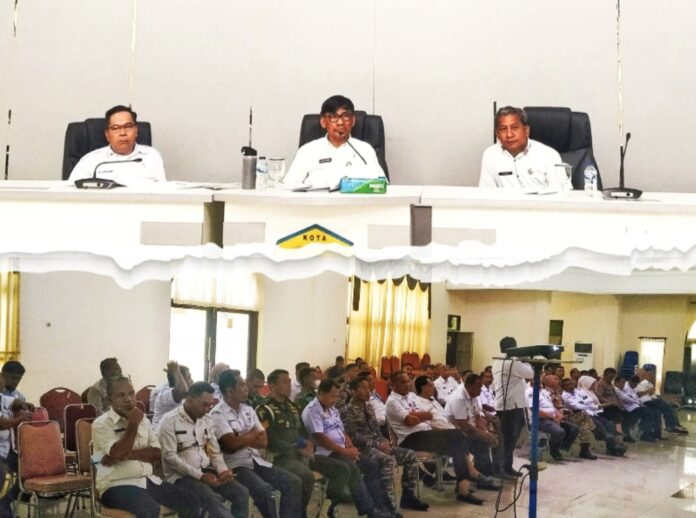 Bertempat di Aula Kantor Wali Kota Baubau, rapat tersebut dipimpin Asisten I Setda La Ode Aswad, S.Sos., M.Si., didampingi Plt Asisten II Moh. Abduh dan Kabag Pemerintahan Simson Nanlohy.