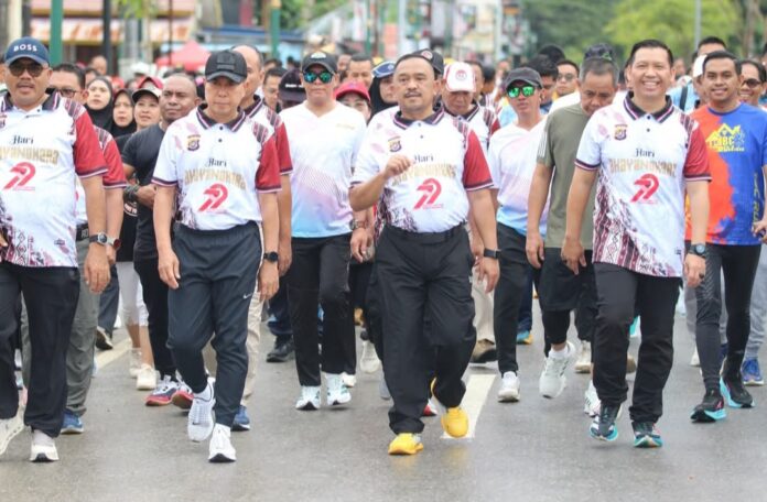 Ratusan peserta yang terdiri dari personel Polri dan keluarganya, personel TNI, serta masyarakat umum tampak antusias memadati lokasi kegiatan. Suasana penuh keakraban terlihat saat peserta mengikuti jalan sehat mengelilingi kawasan Ex MTQ dan melanjutkan dengan senam bersama.