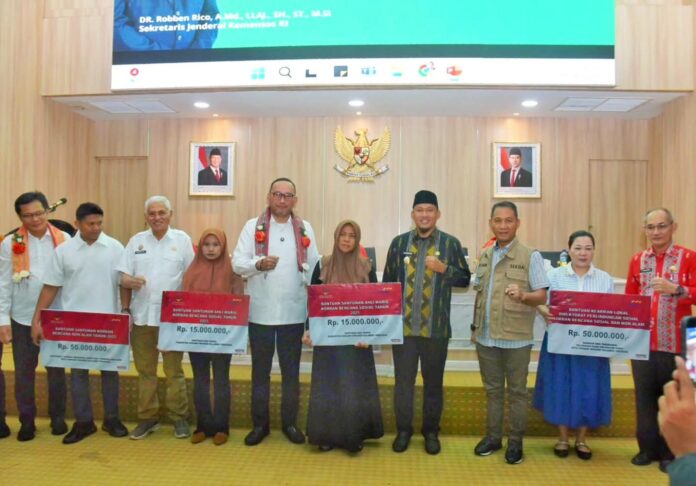 Kendari, PancanaNews.com– Kementerian Sosial Republik Indonesia menyalurkan santunan bagi korban bencana non-alam di Provinsi Sulawesi Tenggara. Bantuan tersebut diserahkan langsung oleh Sekretaris Jenderal Kemensos RI, Robben Rico, dalam kegiatan yang berlangsung di Aula Samaturu, Kantor Balai Kota Kendari, Jumat (27/6/2025).