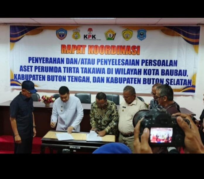 PancanaNews.com, Buton – Persoalan aset Perusahaan Umum Daerah (Perumda) Tirta Takawa Kab. Buton yang telah berlangsung puluhan tahun akhirnya menemukan titik terang. Komitmen penyerahan aset PDAM Kabupaten Buton kepada pemerintah daerah hasil pemekaran resmi ditandatangani pada Jumat, (06/03/2026).