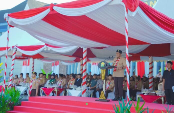 Hal itu disampaikan saat memimpin upacara peringatan Hari Pramuka ke-64 Tingkat Provinsi Sultra di Lapangan Kantor Gubernur, Kamis (14/8/2025).
