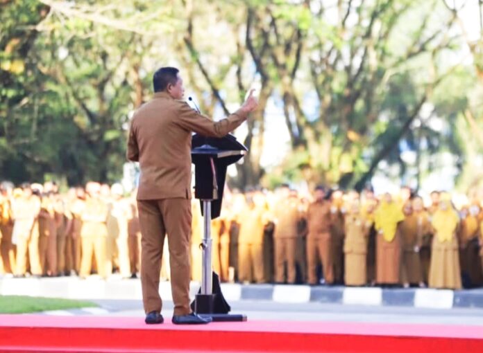 Penegasan ini disampaikan saat dirinya memimpin Apel Gabungan ASN lingkup Pemerintah Provinsi Sultra di halaman Kantor Gubernur, Senin (4/8/2025).
