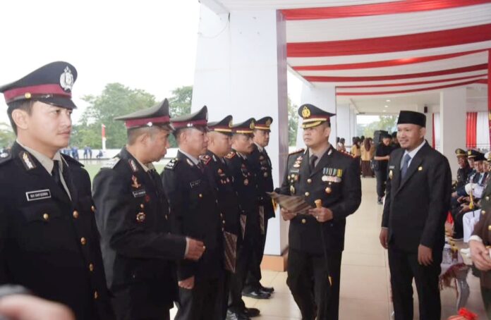 Kendari, PancanaNews.com – Peringatan Hari Ulang Tahun (HUT) ke-79 Bhayangkara di Kota Kendari berlangsung khidmat meski diguyur rintik hujan, Selasa (1/7/2025).